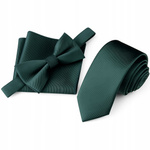 Zestaw krawat + mucha + poszetka - ciemny zielony
