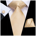 Zestaw męski w pudełku - krawat + poszetka + spinki do mankietów + spinka do krawata JASNY SZARY