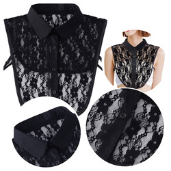 Czarny koronkowy kołnierzyk fałszywa koszula półkoszula