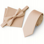 Zestaw krawat + mucha + poszetka - szampański