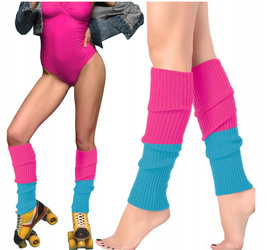 Różowo-niebieskie prążkowane ocieplacze na nogi – getry