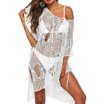 Długie pareo, narzutka plażowa w geometryczne wzory