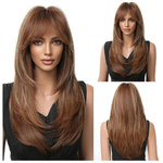 Peruka długa brąz prosta grzywka