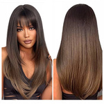 Peruka z grzywką prosta brąz blond ombre