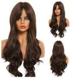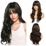 Peruka długa pasemka brązowy rudy prosta grzywka