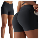 Spodenki sportowe fitness karbowane z wysokim stanem