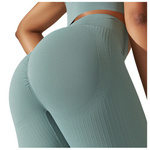 Legginsy sportowe prążkowane wysoki stan marszczenia