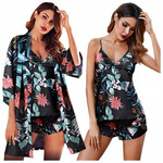 Komplet szlafrok damski satynowy piżama dwuczęściowa
