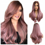Peruka długa ombre różowa fale