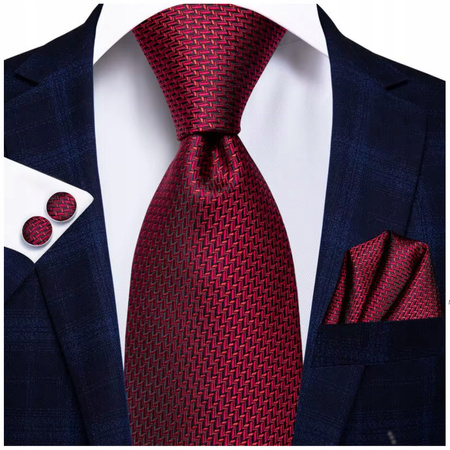 Żakardowy zestaw - krawat + poszetka + spinki